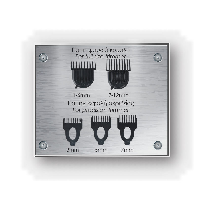 3 διαφορετικοί οδηγοί κοπής για την κεφαλή κουρέματος ακριβείας για αντίστοιχα μήκη κουρέματος 3 – 5 – 7mm